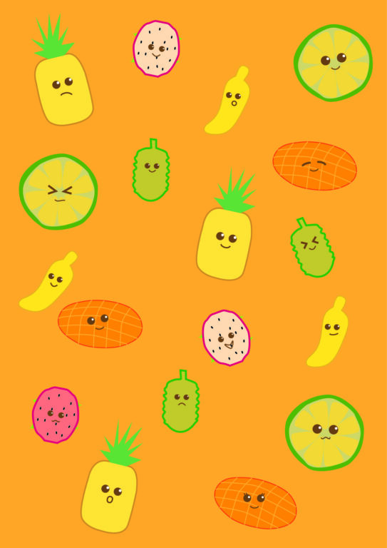 かりゆしウェア テキスタイルデザインコンテスト2024 うちなーふるーつ沖縄の県産品として代表的なフルーツやゴーヤーをデザインしました。 顔をつけることでポップにし明るいイメージに仕上げました。 Twitter Facebook LINE -かりゆしウェア テキスタイルデザインコンテスト2024