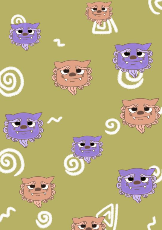 かりゆしウェア テキスタイルデザインコンテスト2019 シーサーと空気子供からお年寄りまで幅広い年代に来てほしいと言う思いを込めてデザインしました。ポイントはカラフルなシーサーです。投稿者:おこめ。 Twitter Facebook LINE -かりゆしウェア テキスタイルデザインコンテスト2019