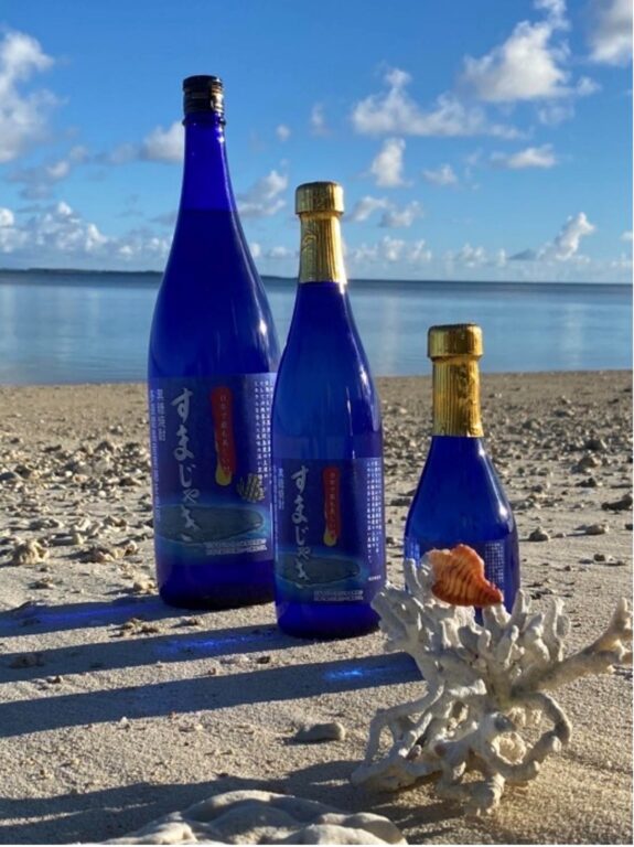 ちなみに、「すまじゃき」の意味は、多良間島の方言で「島のお酒」という意味です!「すま=島」、「じゃき=酒」というわけなんです♪南国の島のお酒らしく、タラマブルーをイメージした綺麗な青いボトルが目印です!この瓶が綺麗すぎて、実は観賞用に小さいサイズを買って家に飾っている私です(笑)。