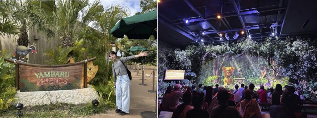 やんばるクイナの「ジャン」とシーサーの「シシ」と触れ合いながら、お話できるアトラクションです。ジャンは好奇心いっぱいで、私たち人間のことを知りたがっているみたい。