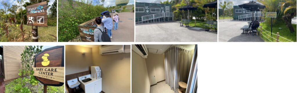 また、小さなお子様連れの方にも優しく、アトラクション付近にはベビーカー置き場が設けられているほか、ベビーケアセンターも充実していました。
