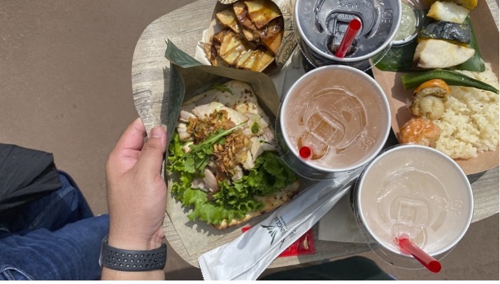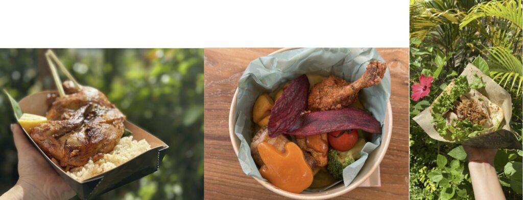ガラス張りのライブキッチンでは、シェフたちが目の前で調理する様子も見られてワクワク感満点。メニューには、沖縄県産食材を使ったハンバーガーやケバブなど、食欲をそそる“ワイルドグルメ”が勢ぞろい!