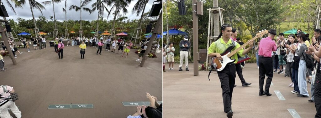 ランチを楽しんでいると、ワイルドバンケットの広場から突然にぎやかな音が!「ワイルドビート」は、突如始まるサプライズのミュージックライブ。