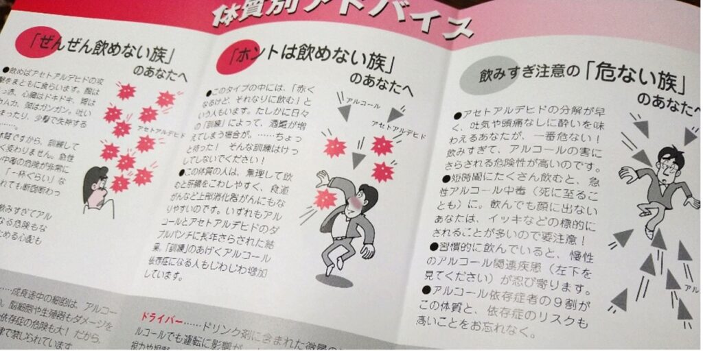 ちなみにパンフレットには、日本人の5~6割ほどが「危ない族」の体質を持っていると記載がありました。意外と多い??今回の多良間のデータでは、村民の7~8割がこの体質ということになるので、確かに沖縄県内&全国で比較しても高い方なんでしょうね。でもお酒に強い体質だからといっても、飲み過ぎはだめ絶対。皆様も楽しく適量でいきましょう♪