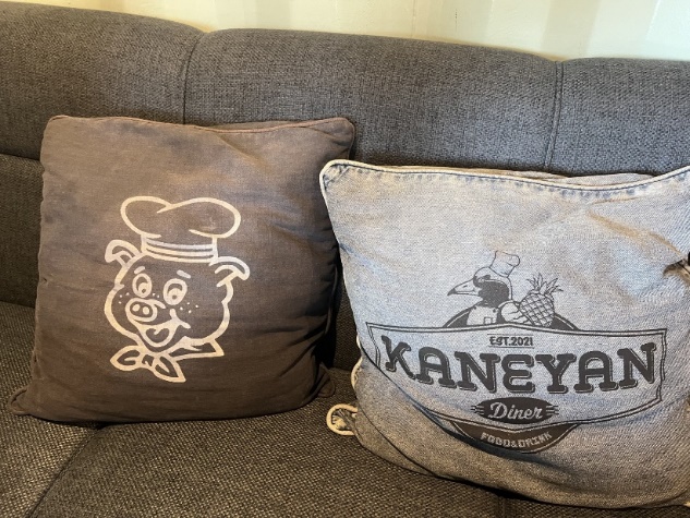 かねやん食堂に行くと、あらゆるところにキャラクターがいる。この正体は、知り合いのデザイナーさんにデザインしてもらった愛くるしいキャラクターである。